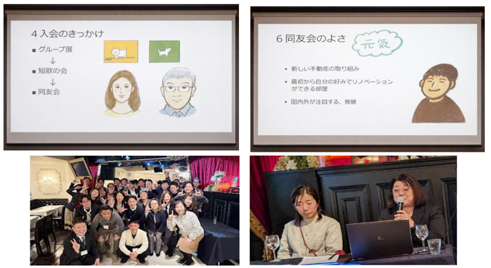 会員報告は三重野 睦美さん。前職からイラストレーターに転職された経緯や、同友会入会のきっかけ、同友会の学び、これからのビジョンなど短い時間の中で、分かりやすい報告内容でした。スライドで同友会のたくさんの会員さんがイラストで描写されており、すごく温かみを感じました。