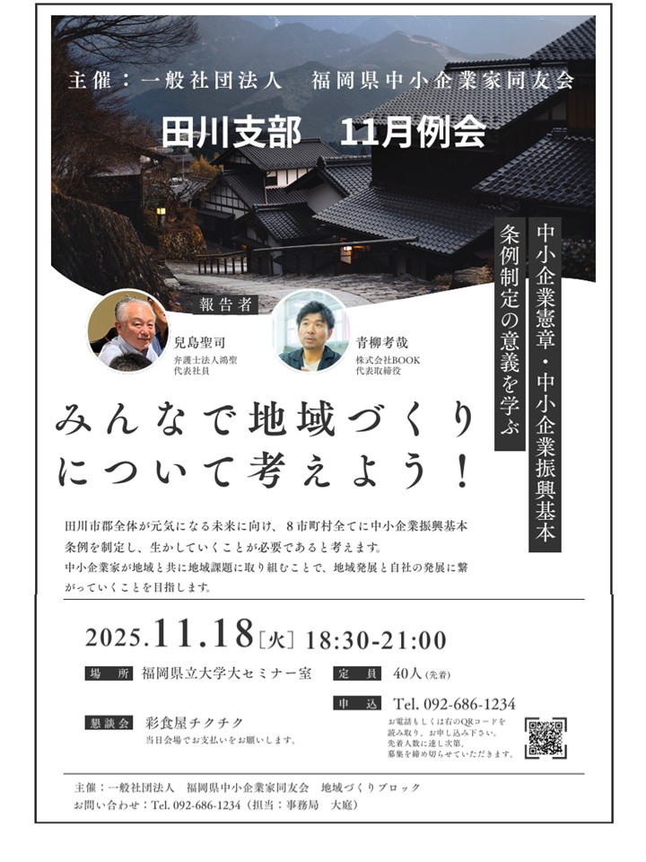 田川市における条例に基づいた運動に地域づくりは企業づくりと直結することを学び、中小企業振興基本条例制定の意義を学びあいましょう!