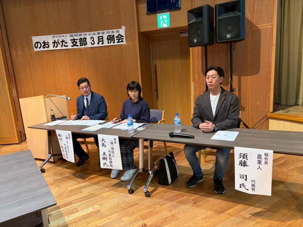 のおがた支部長であり、農業人代表の須藤司様より、失敗から学んだ経営についての報告を聴かせていただきました。