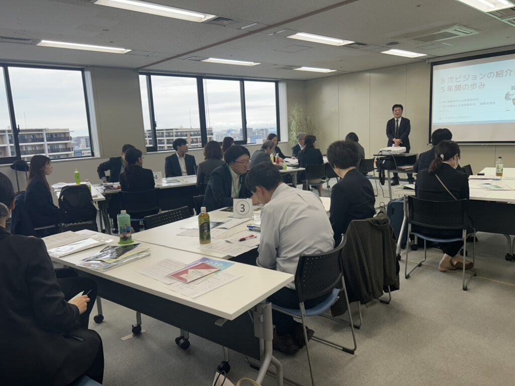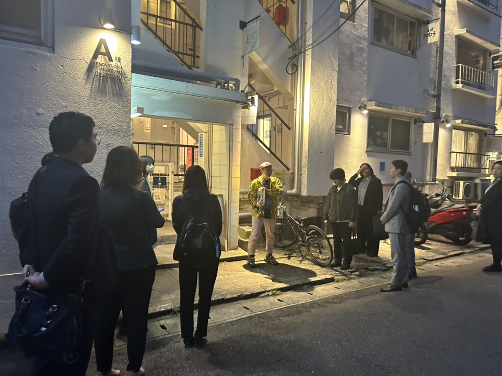 夕方には福岡同友会ソーシャルビジネス委員会について教えてほしいとのことで、吉原住宅(有)吉原 勝己氏(南支部)より自社での取組や委員会で学んだことを報告していただきました。報告後は国の有形文化財としても登録されている「冷泉荘」に見学に行かせていただきました。