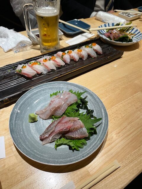 新鮮な魚料理が並びおいしさを堪能しながら話もはずみ