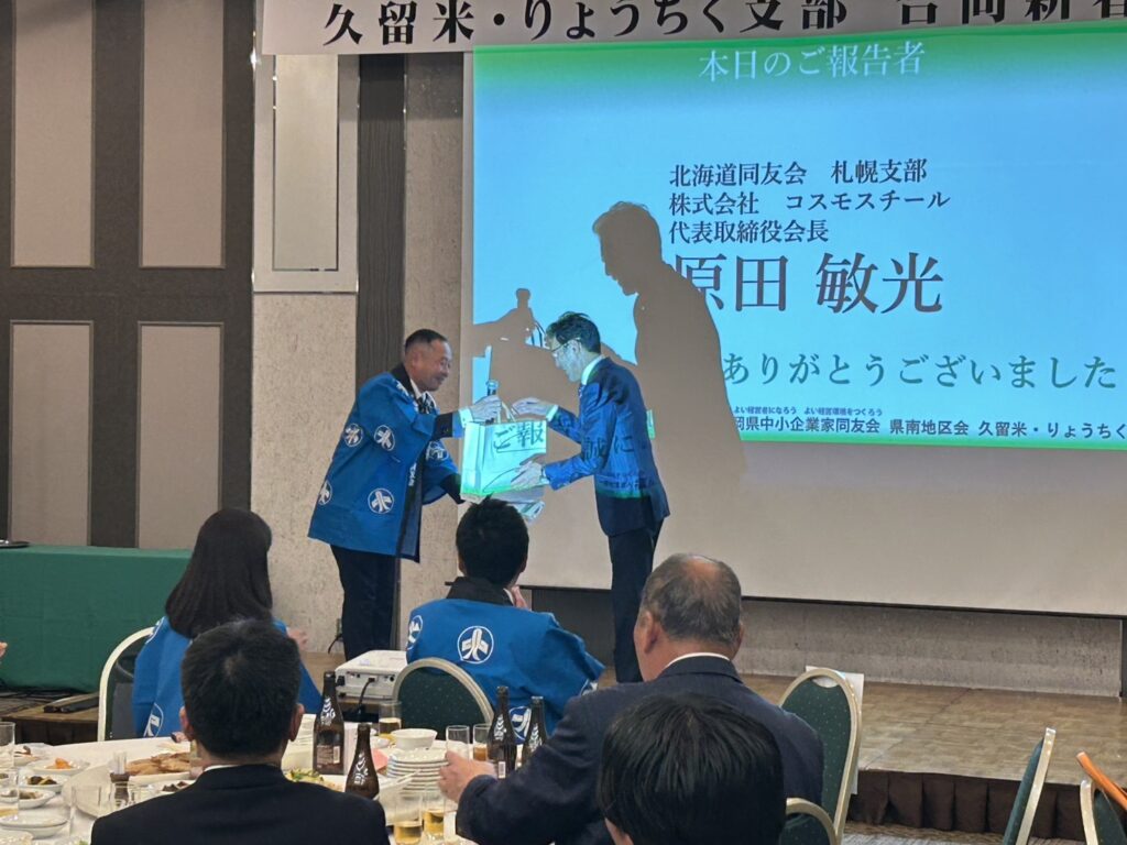 報告者は株式会社コスモスチール代表取締役会長の原田敏光さんです。(北海道同友会札幌支部)