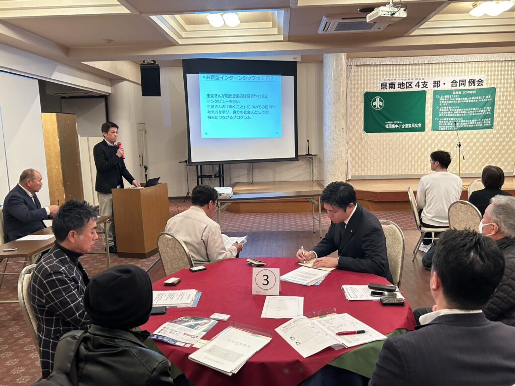 2026年2月27日(金)ランヴィエール勝島(柳川市)にて、県南地区4支部(久留米支部・大牟田支部・有明支部・りょうちく支部)による合同例会が行われました。今回の例会は県南地区が主催し、同友会の地域づくり活動として、「共育型インターンシップ(インタビューシップ)を学ぶ」と題して行われました。