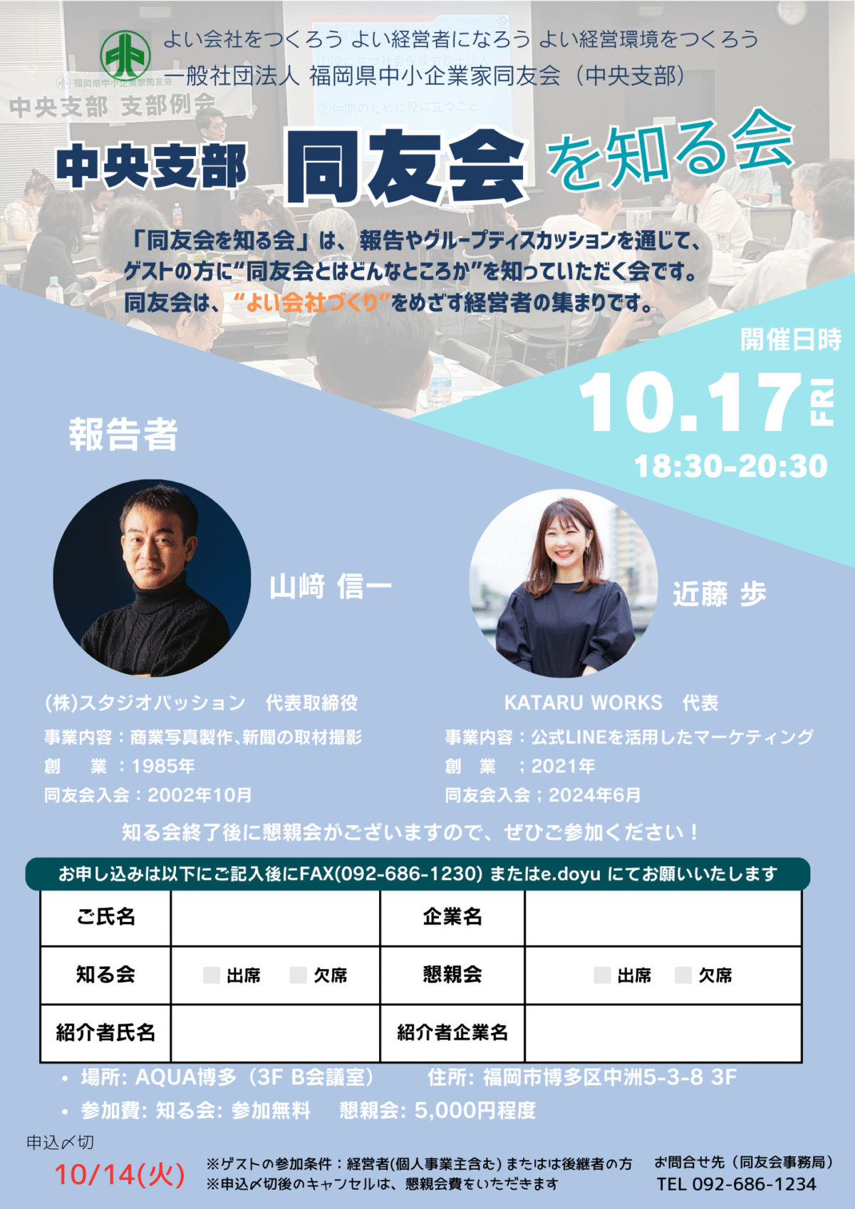 お知り合いの経営者・後継者の方をお誘いいただき是非ご参加お願いします。