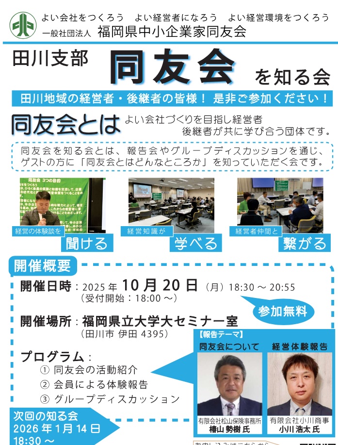 田川地域の経営者・後継者の皆様! 是非ご参加ください!