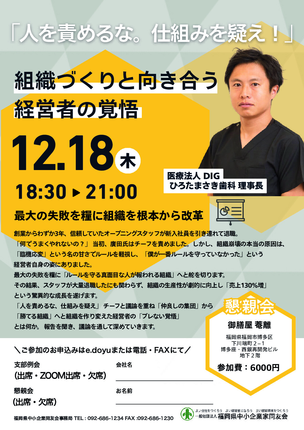 福友愛支部 参加費無料 【福友愛支部12月支部例会】「⼈を責めるな。仕組みを疑え!」