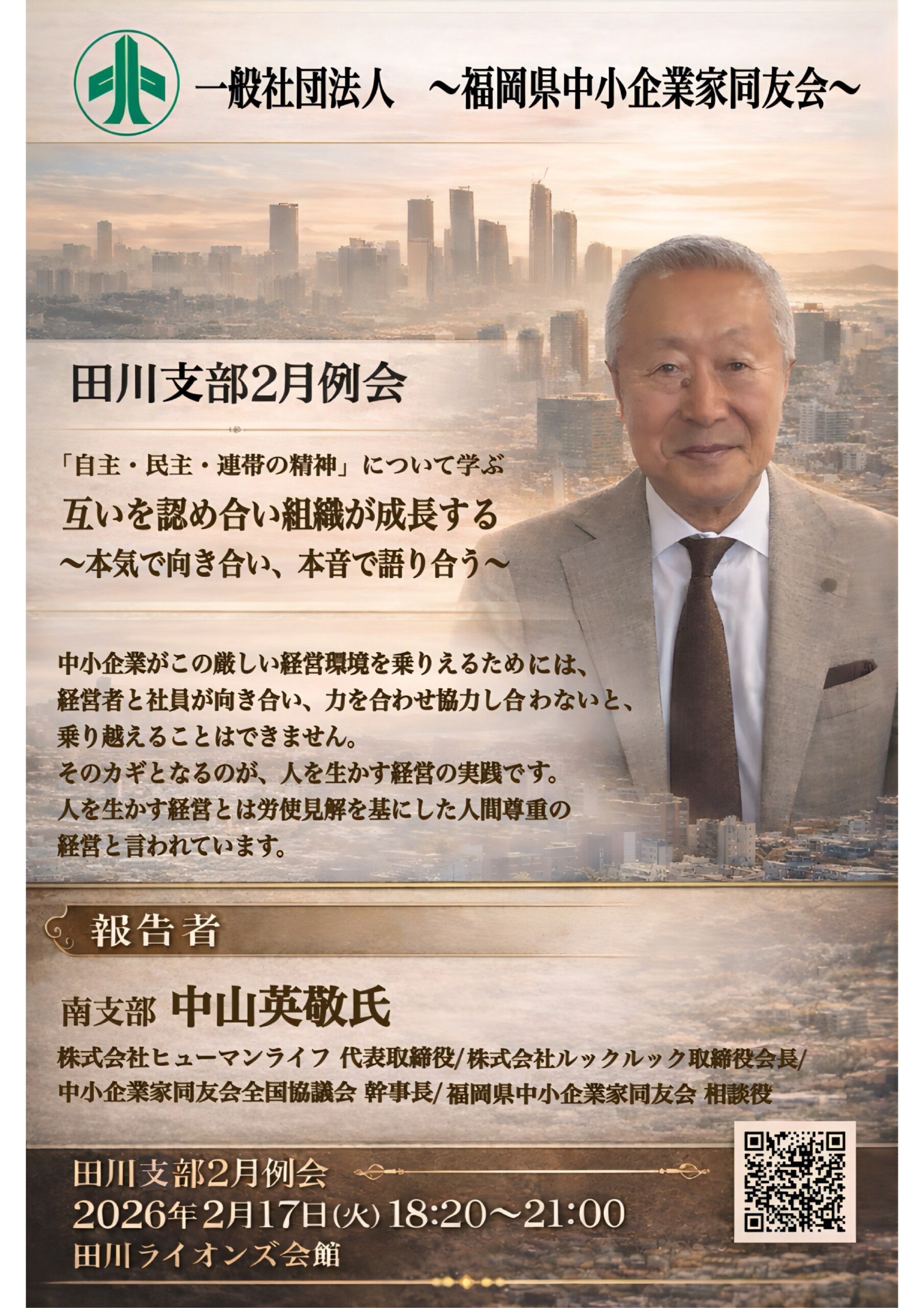 福友和支部 参加費無料 福友和支部2月支部例会「朝令暮改」は進化の証 ! ~常識を捨て、未曾有の危機を ゛高速 “で駆け抜ける決断力~